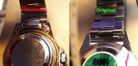 Desweiteren besteht das Armband der Fälschung aus billigem Stahl mit einer minderwertigen Nickel-Legierung! Es gibt weder Original Rolex Uhren die in den letzten 50 Jahren mit einem Saphir-Glas Boden produziert wurden noch Modelle, die auf Rückseite oder dem Boden mit Gravuren versehen wurden! (Ausnahme limitierte Modelle) Das Rolex Hologramm ist 3 dimmensional und nicht wie bei vielen Fälschungen mit einem billigen 2D-Effekt versehen!